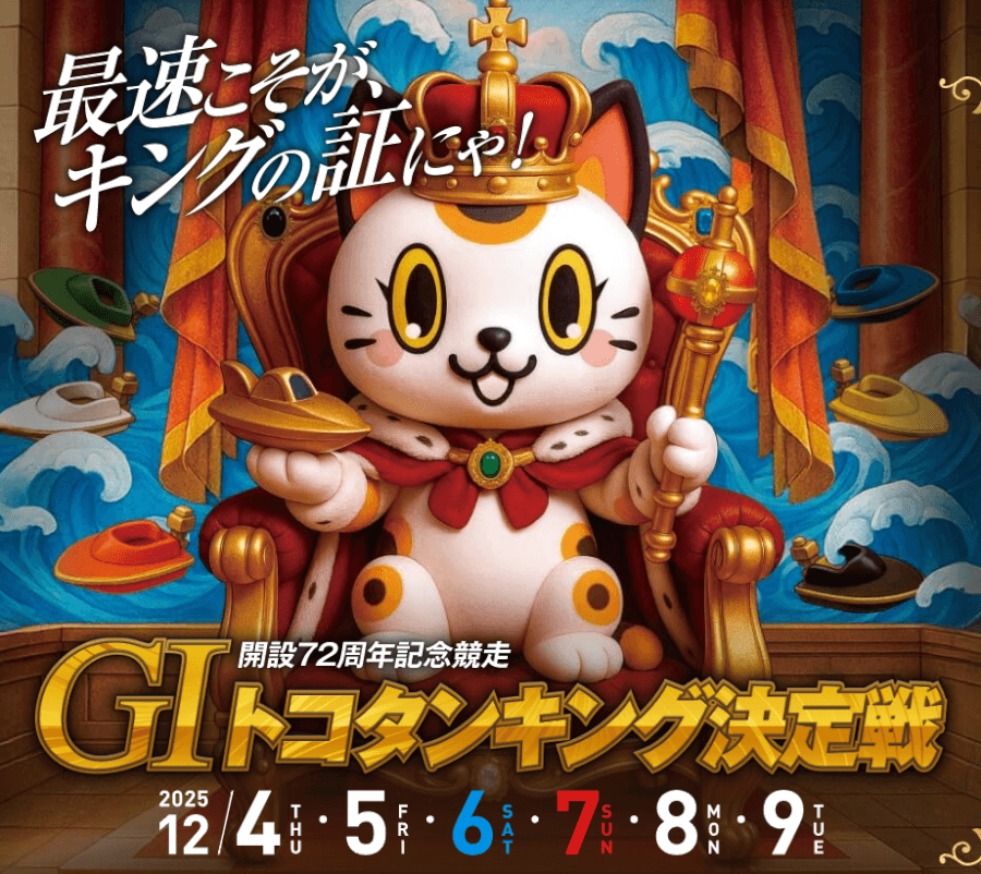 トコタンキング決定戦とは「トコタンキング決定戦」は、常滑競艇場の周年記念祭として行われるG1競走。開催は年に一度で、例年、多くのトップレーサーが集結するハイレベルな一戦となる。出場資格は基本的にA1級選手の主催者推薦によるもので、いわゆる“…